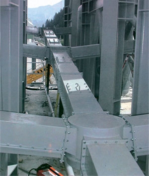 斜槽主要構(gòu)件是透氣層,本系列設(shè)計(jì)中采用的柔性厚型板式合成纖維織物,是一種新型透氣層,它具有耐高溫(可達(dá)150℃)耐腐蝕,耐磨損,吸濕性低,重量輕,表面平整,使用壽命長(zhǎng)等優(yōu)點(diǎn)。透氣層無需現(xiàn)場(chǎng)安裝,每節(jié)槽體由制造廠組裝后,現(xiàn)場(chǎng)對(duì)接起來即可,這樣既減少了安裝工作量,又保證了質(zhì)量。
