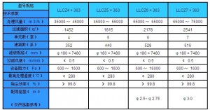◆ LLCZ363系列玻纖袋除塵器所用濾袋規(guī)格為φ180×7480,使用溫度70~250℃。